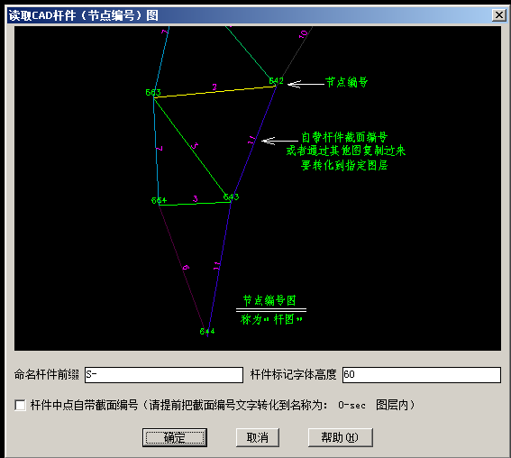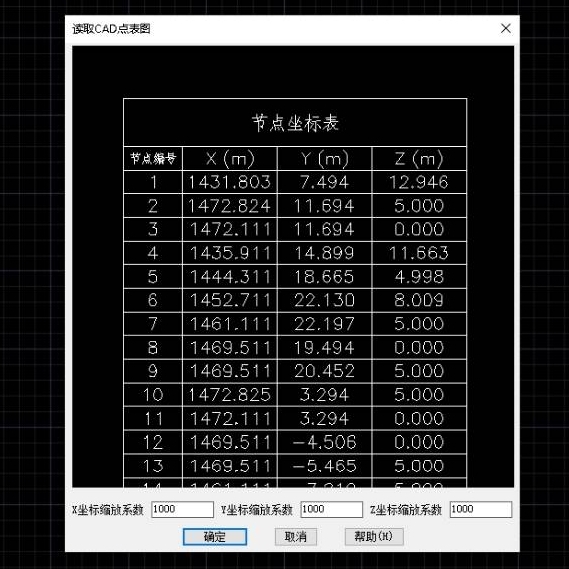 3.包含点表建模。逆向图纸坐标表、杆件表、节点编号图、杆件截面图建模。