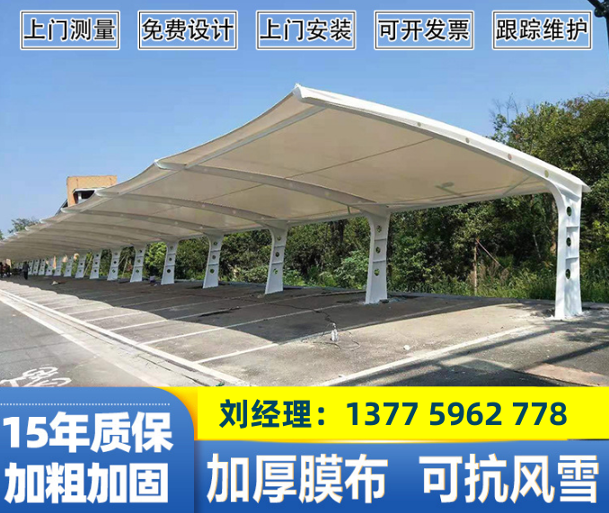 膜结构停车棚雨棚7字型钢结构汽车遮阳棚张拉膜景观蓬自行车车棚